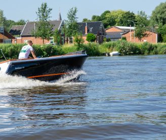 Ja. De 50 pk motor haalt snelheden boven 20 km/u. Een klein vaarbewijs (VB1) is verplicht.