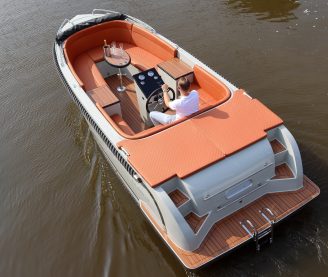 De Sport-uitvoering wordt geleverd inclusief motor, teakvloer, cabriokap, bekleding, schakelkast en accu – direct vaarklaar.
