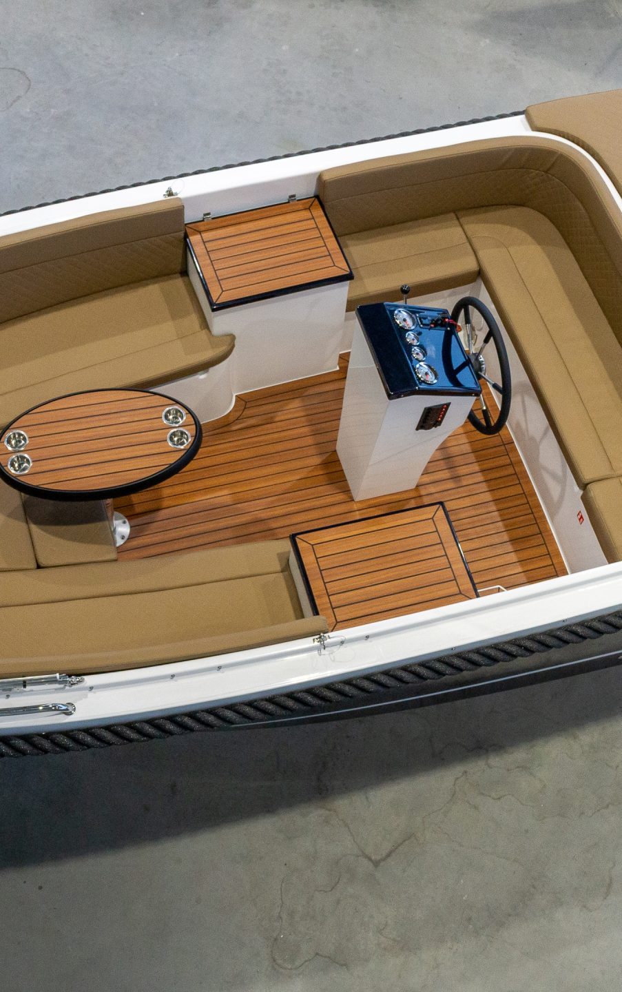 De 634 Ultimate wordt geleverd met gemonteerde motor, teakvloer, cabriokap, bekleding, schakelkast en accu – direct gebruiksklaar.