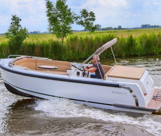 De Sport-uitvoering is uitgerust met een Honda 60 pk buitenboordmotor – elektrisch gestart, stil en soepel in gebruik.