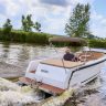 De 635 Ultimate wordt compleet geleverd: motor, teakvloer, cabriokap, luxe bekleding en schakelkast. Instappen en varen.