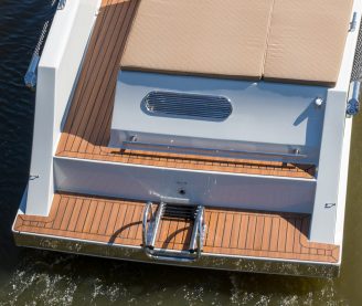 De praktische doorloop tussen kuip en zwemplateau maakt instappen eenvoudig. Zo stap je moeiteloos in en uit het water, zonder over banken te hoeven klauteren. Perfect voor een frisse duik, het aanmeren of een ontspannen moment met je voeten in het water.