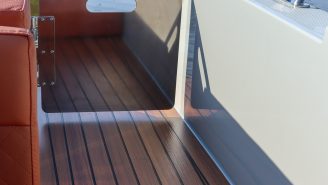 De praktische doorloop tussen kuip en zwemplateau maakt instappen eenvoudig. Zo stap je moeiteloos in en uit het water, zonder over banken te hoeven klauteren. Perfect voor een frisse duik, het aanmeren of een ontspannen moment met je voeten in het water.